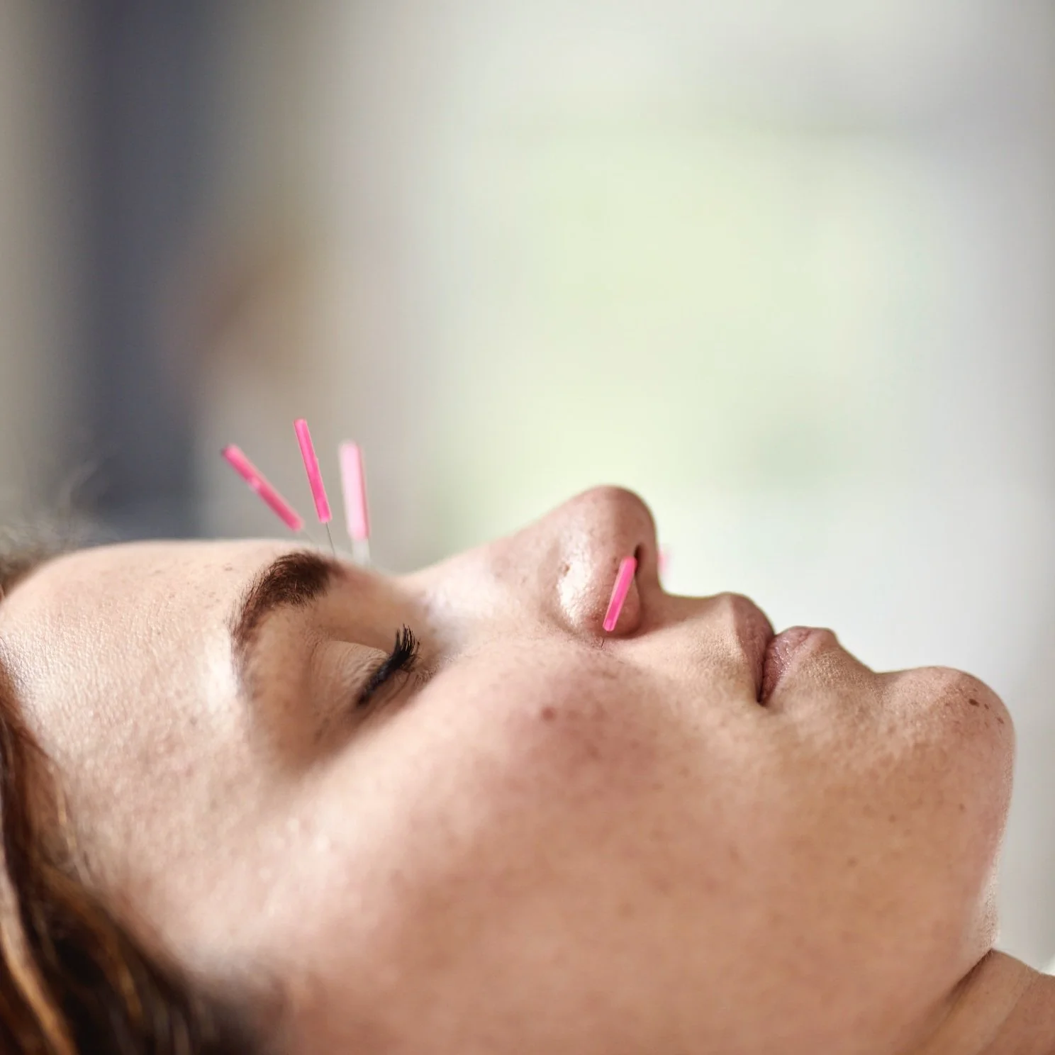 Facial cosmetic acupuncture focuses on rejuvenating, re-energising and addressing signs of skin concerns by stimulating, repairing and renewing skin mechanisms from within the dermis. The treatment involves superficially inserting tiny needles on the face creating positive microtraumas accelerating a cascade of crucial healing triggers. It facilitates increased micro-circulation and oxygen supply to the skin which promotes detoxification and encourages production of newer and stronger collagen and elastin fibres. The result is improved firmness, elasticity, reduction of fine lines, and an overall healthier complexion and texture.