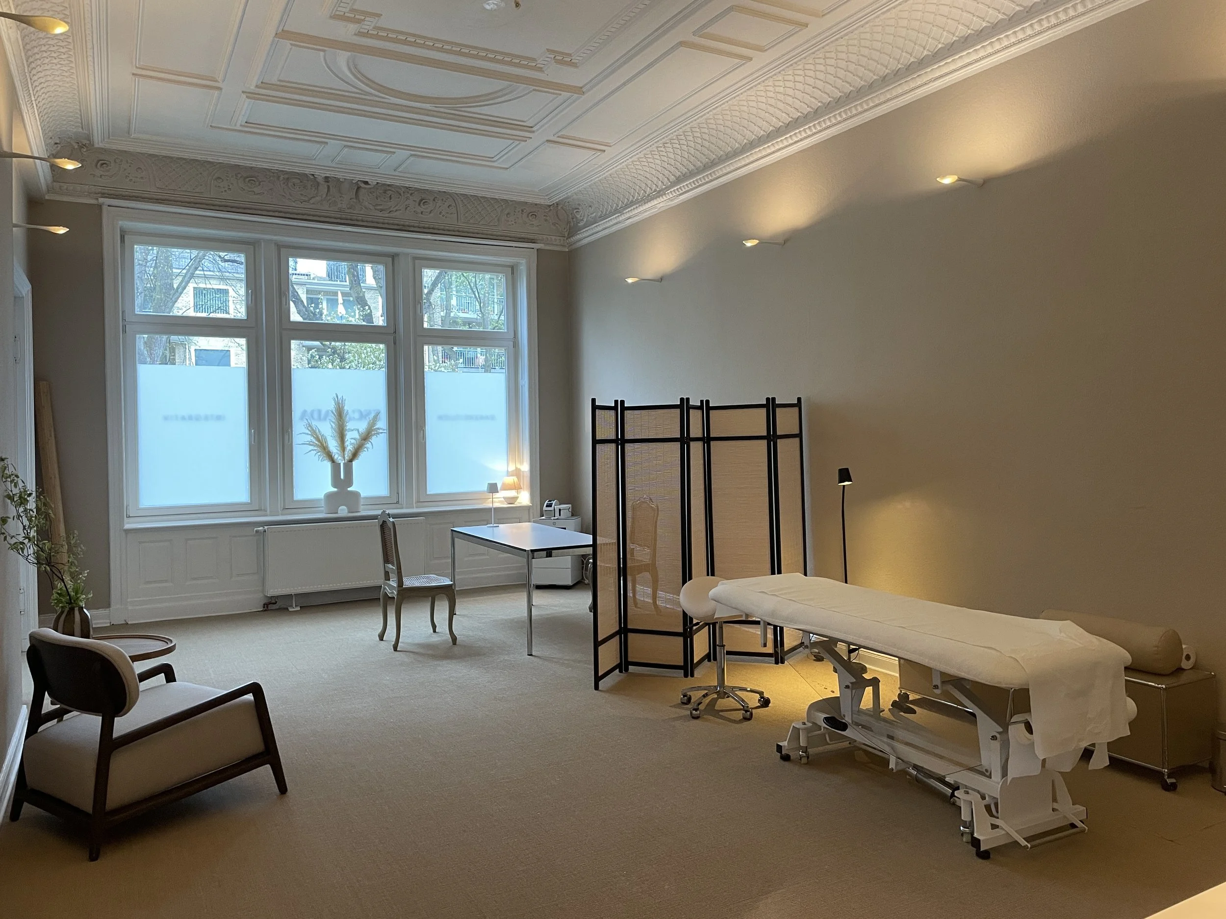 Bei ESCAPADA vermieten wir zwei Räume, die auf ganz unterschiedliche Weise Ruhe, Klarheit und Atmosphäre vereinen. Die Alte Apotheke besticht durch Altbaucharme, hohe Decken und eine elegante, erdende Stimmung während das Movement Studio im Souterrain gemütlich und reduziert gestaltet ist – ein geschützter Raum für Bewegung, Fokus und gemeinsames Erleben. Für alle, die das Escapada Health Hamburg Angebot mit eigenen Formaten ergänzen möchten, können sich bei uns stundenweise einmieten.